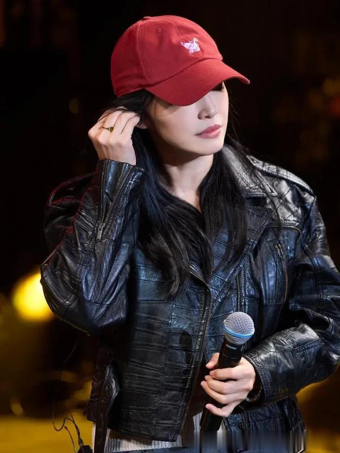 45岁姚晨越来越时髦! 穿皮衣+阔腿裤+棒球帽, 时髦又减龄!
