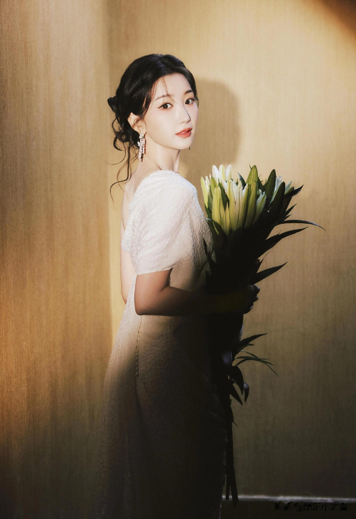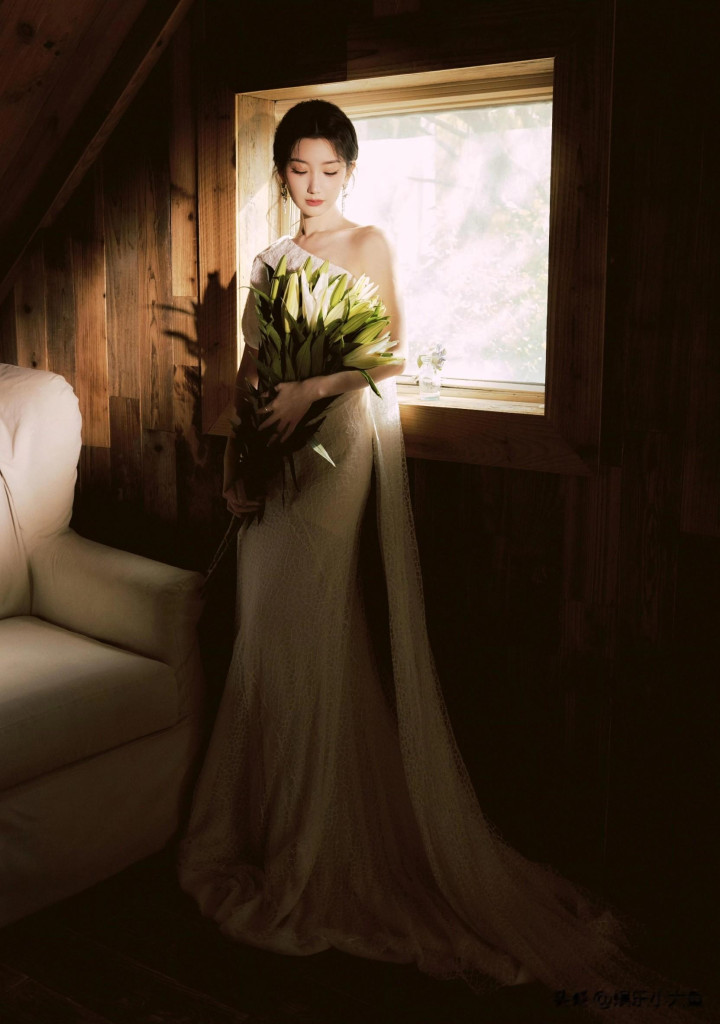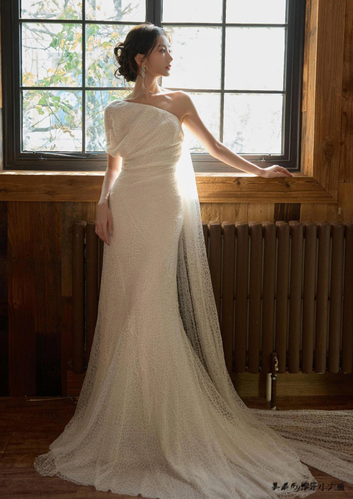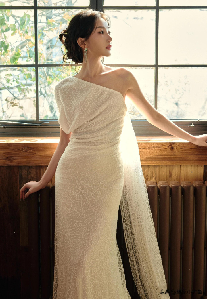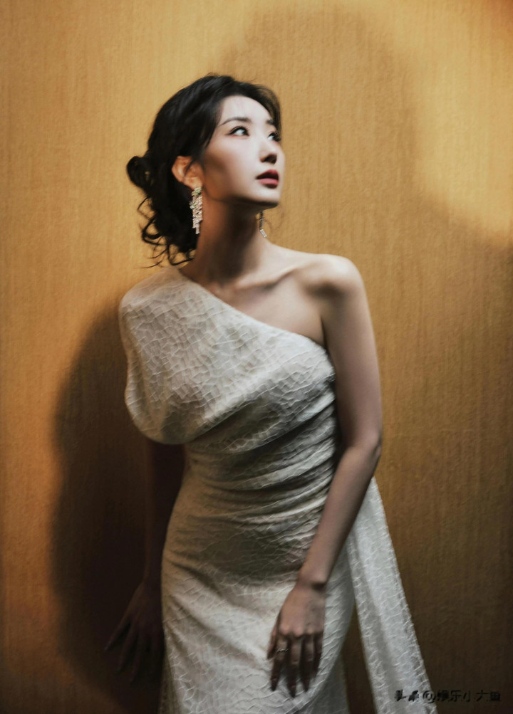 毛晓彤出席微博视界大会, 白色露肩礼服裙发髻低挽, 腰肢纤细好美