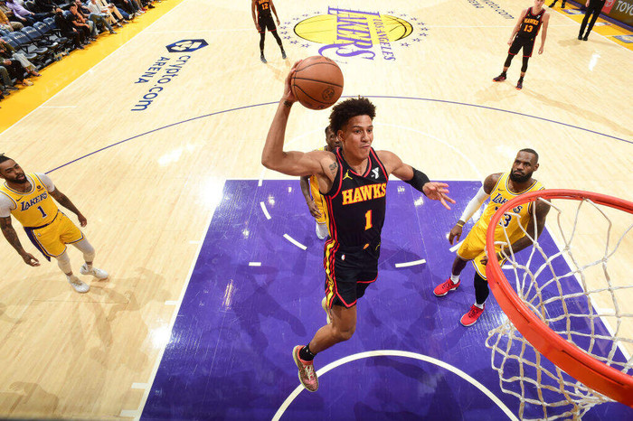 自11月9日大胜湖人以来,亚特兰大老鹰已豪取五连胜,目前以9胜5负的战绩高居东部第四的位置。连胜期间,杰伦-约翰逊缺席了对阵湖人的比赛,余下的四场常规赛,他场均可以贡献24分12篮板9.3助攻2.5抢断,投篮命中率60.3%,三分命中率57.1%。
