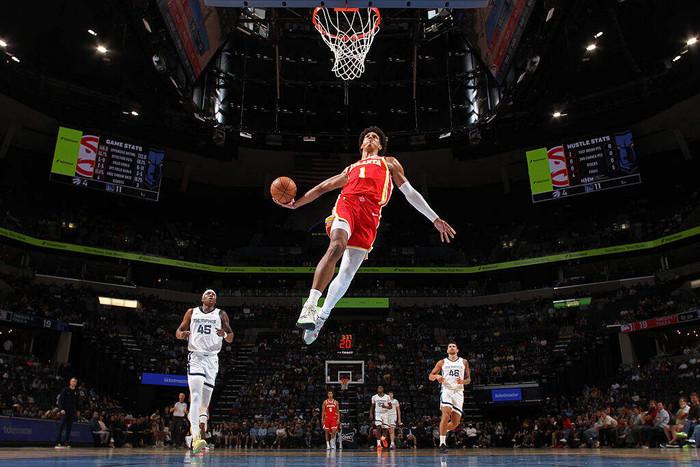 于是,在高中和大学时期被众星捧月的超级新星杰伦-约翰逊,在新秀赛季,成了亚特兰大老鹰的“饮水机管理员”。