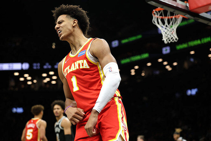 2023-24赛季,老鹰开赛两连败,但攻守全能的杰伦-约翰逊却因祸得福,凭借出色的表现迅速成为了老鹰先发五虎中的一员。