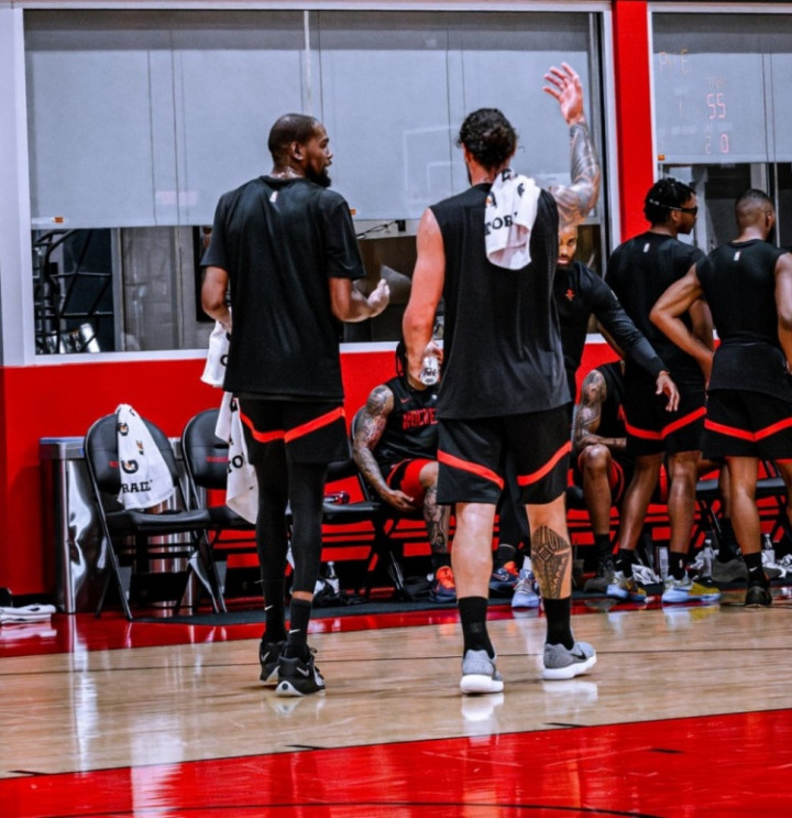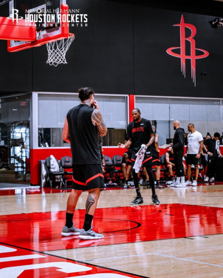 火箭官方晒训练照: 杜兰特亚当斯互动 申京阿门在列 奥科吉太壮了
