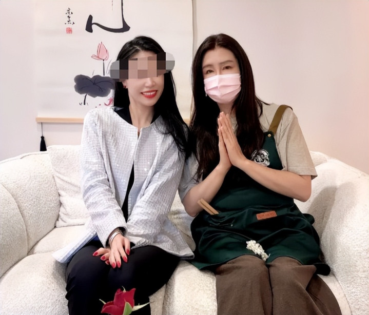这不,前两天有网友去艾灸店打卡,与王祖贤亲切合影时,她就是戴着口罩,看起来好神秘。