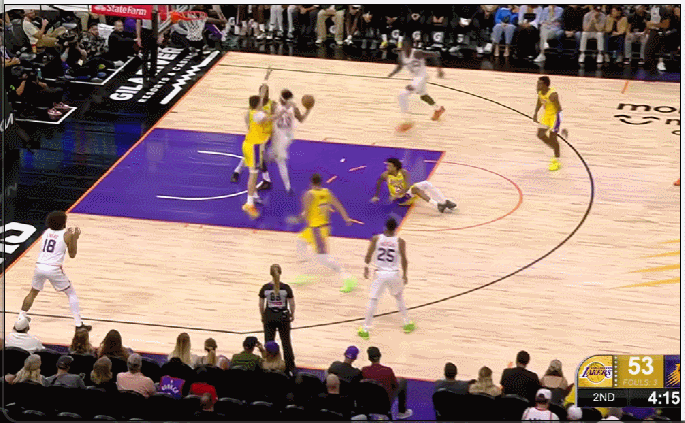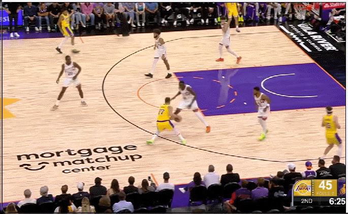 湖人上半场顺风顺水,一度领先15分。但当下半场东契奇下场,球队进攻陷入混乱。第三节湖人只得到17分,而太阳轰下33分。布朗尼在末节尝试带队反扑,但湖人替补阵容明显落于下风。