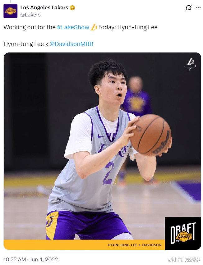 或许很多人忘记了,2022年李贤重曾到湖人队进行过试训,这位身高2.01米的NCAA投手真的很有实力。